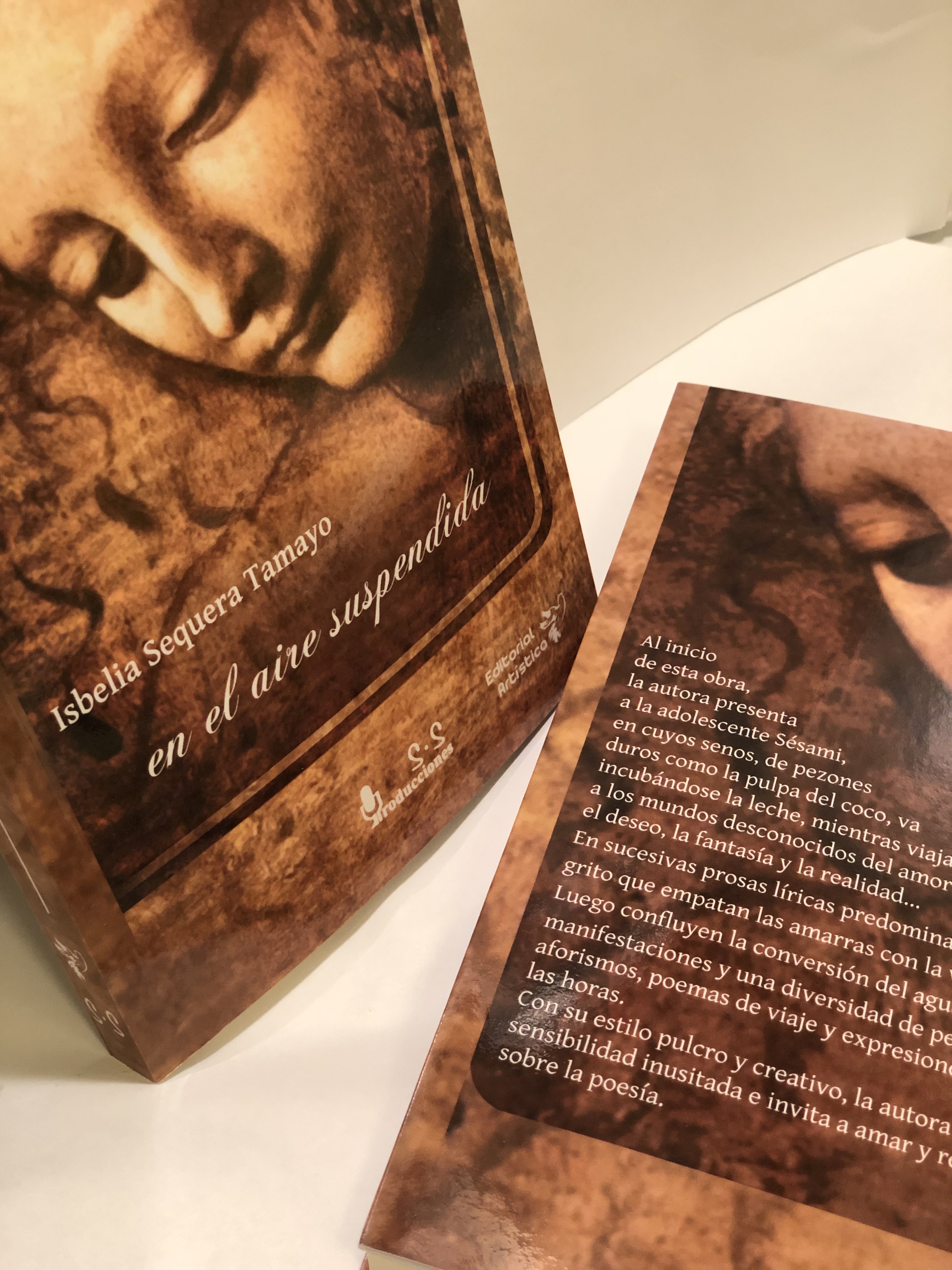 en el aire suspendida es una obra de un estilo pulcro, creativo, cuya sensibilidad inusitada invita a amar y reflexionar sobre la literatura. La obra propone, además, una novedosa forma de puntuación y uso de las mayúsculas que rompe con los parámetros actuales que norman la escritura de la lengua española. La adolescente Sésami viaja a los mundos desconocidos del amor, el deseo, la fantasía y la realidad a través de una excelente prosa poética que incursiona más tarde en pensamientos, aforismos y poesía.